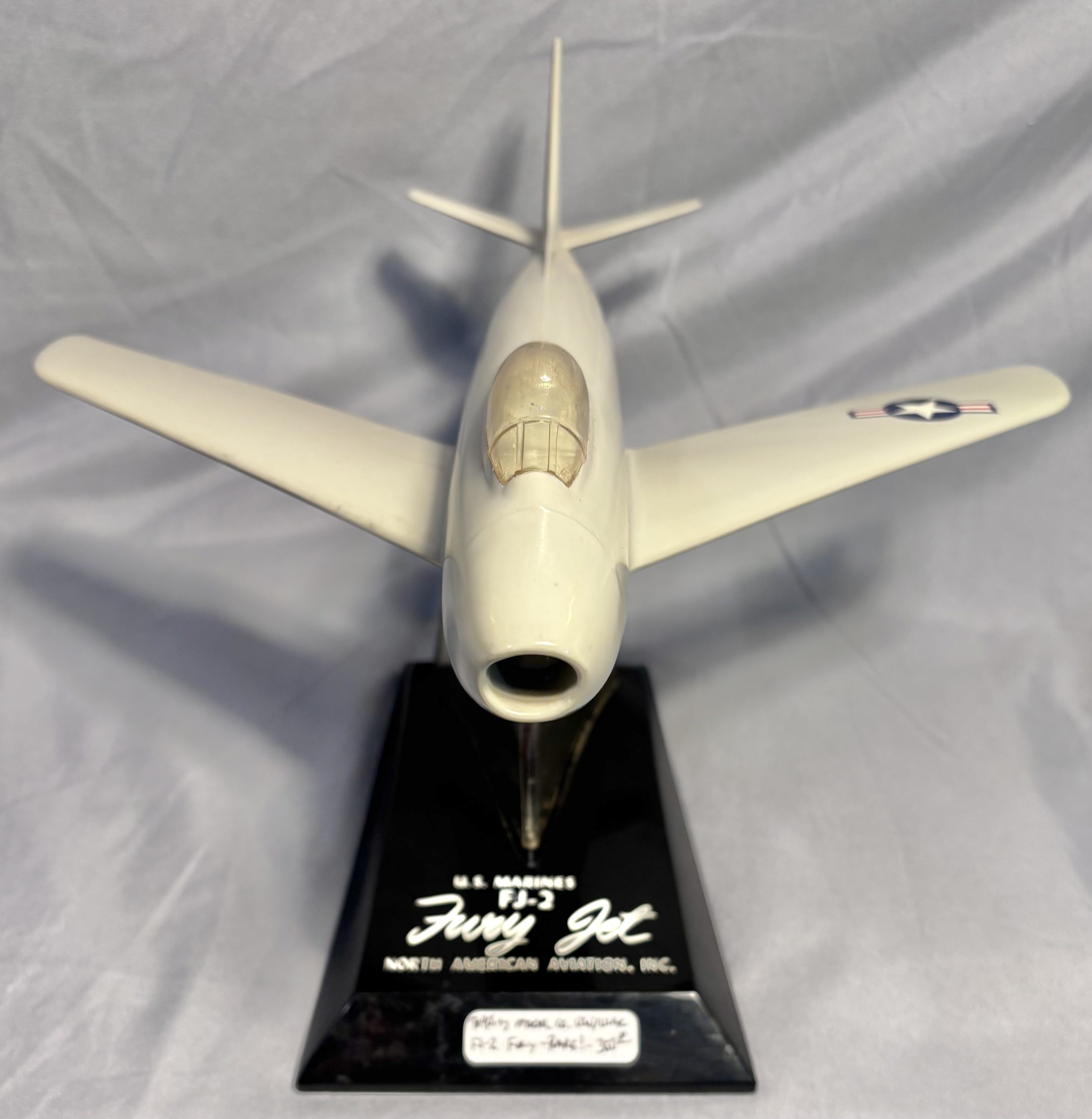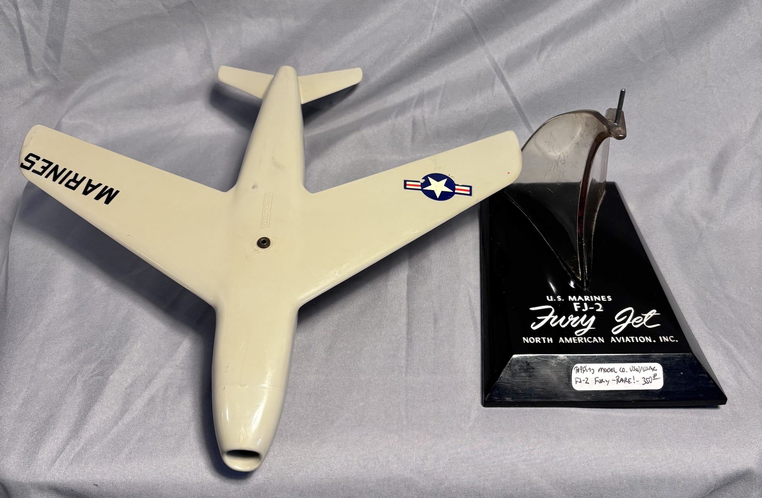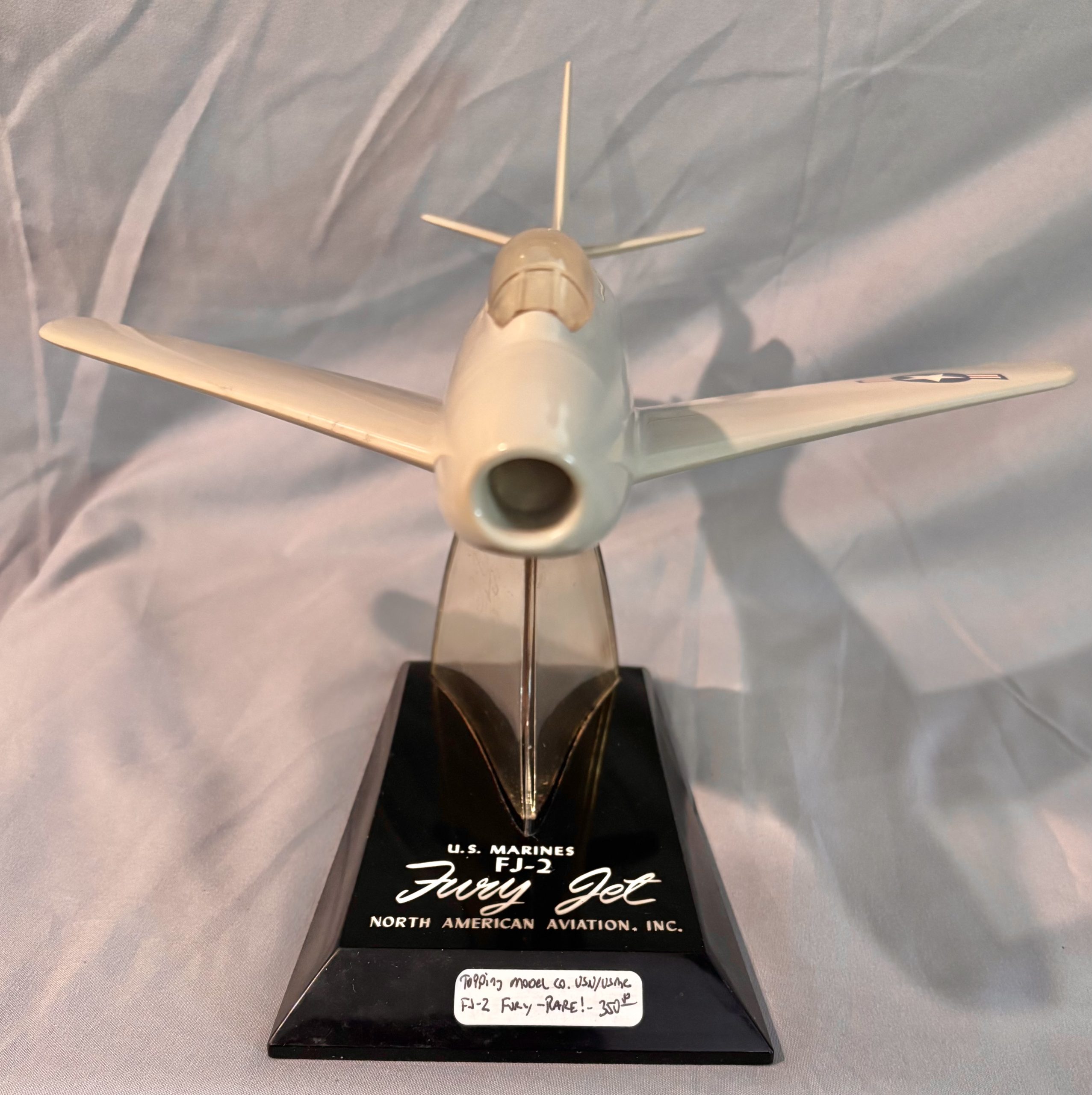 Offered for sale is a highly collectible FJ-2 Fury Jet desktop model produced by Topping Model Co. for North American Aviation, Inc. This rare display model represents the U.S. Marine Corps variant of the early jet-powered fighter that bridged the gap between straight-winged and swept-wing naval aviation.