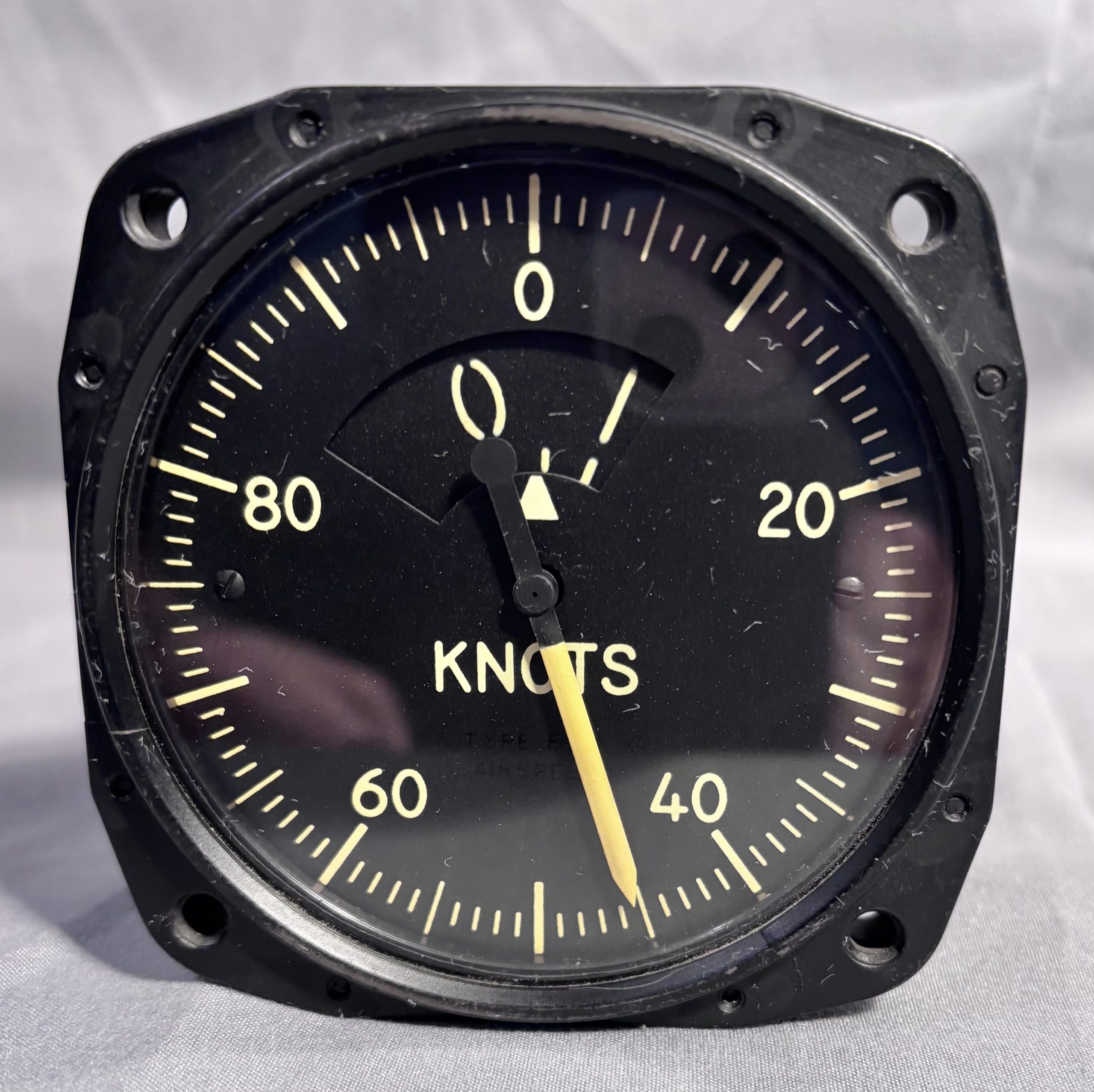 Offered here is an authentic 1944 WWII B-29 Superfortress Airspeed Indicator, manufactured by Squad D Company. This original cockpit instrument was designed for use in the legendary Boeing B-29, the most advanced American heavy bomber of World War II.