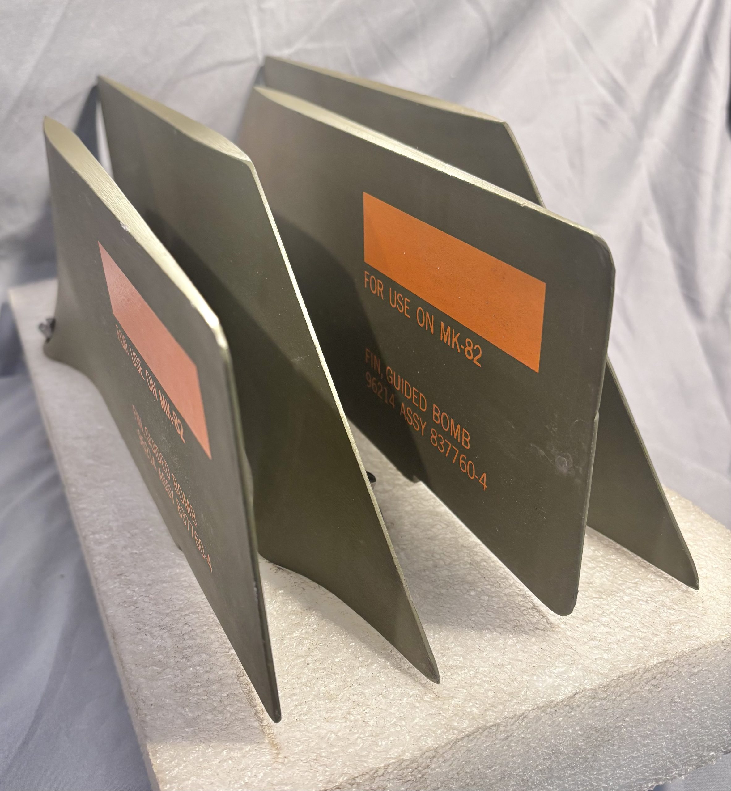 Offered for sale is a set of front guide fins for a Mk 82 laser-guided bomb, new with packaging. These components are being sold strictly as collectible/display or training items.