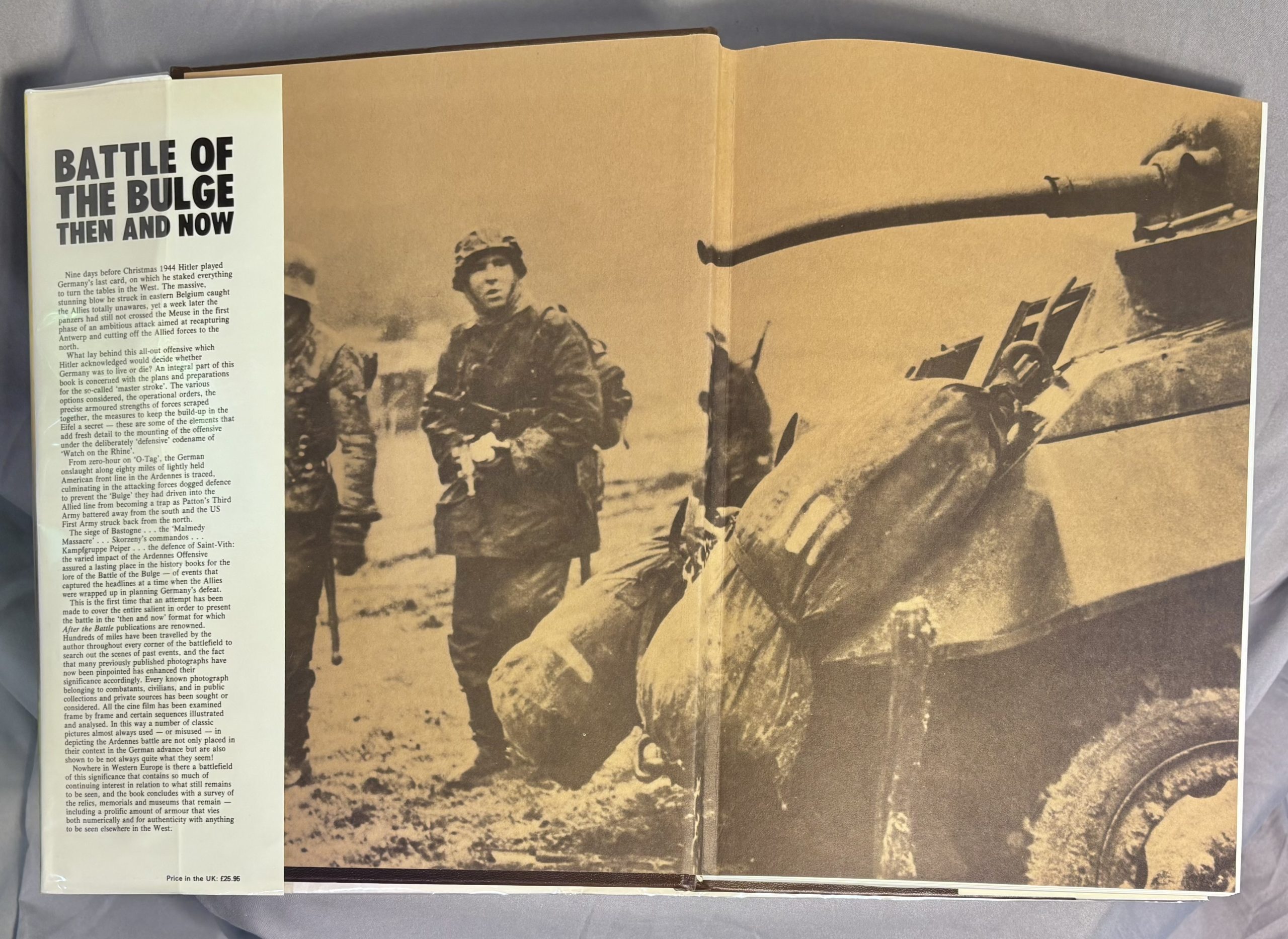 This large-format volume pairs rare wartime photographs with matching modern “then and now” comparison images, allowing readers to see how key battle sites appeared during the winter of 1944–45 and how they look today. Detailed captions and narrative context make this both an outstanding visual reference and a serious historical resource.