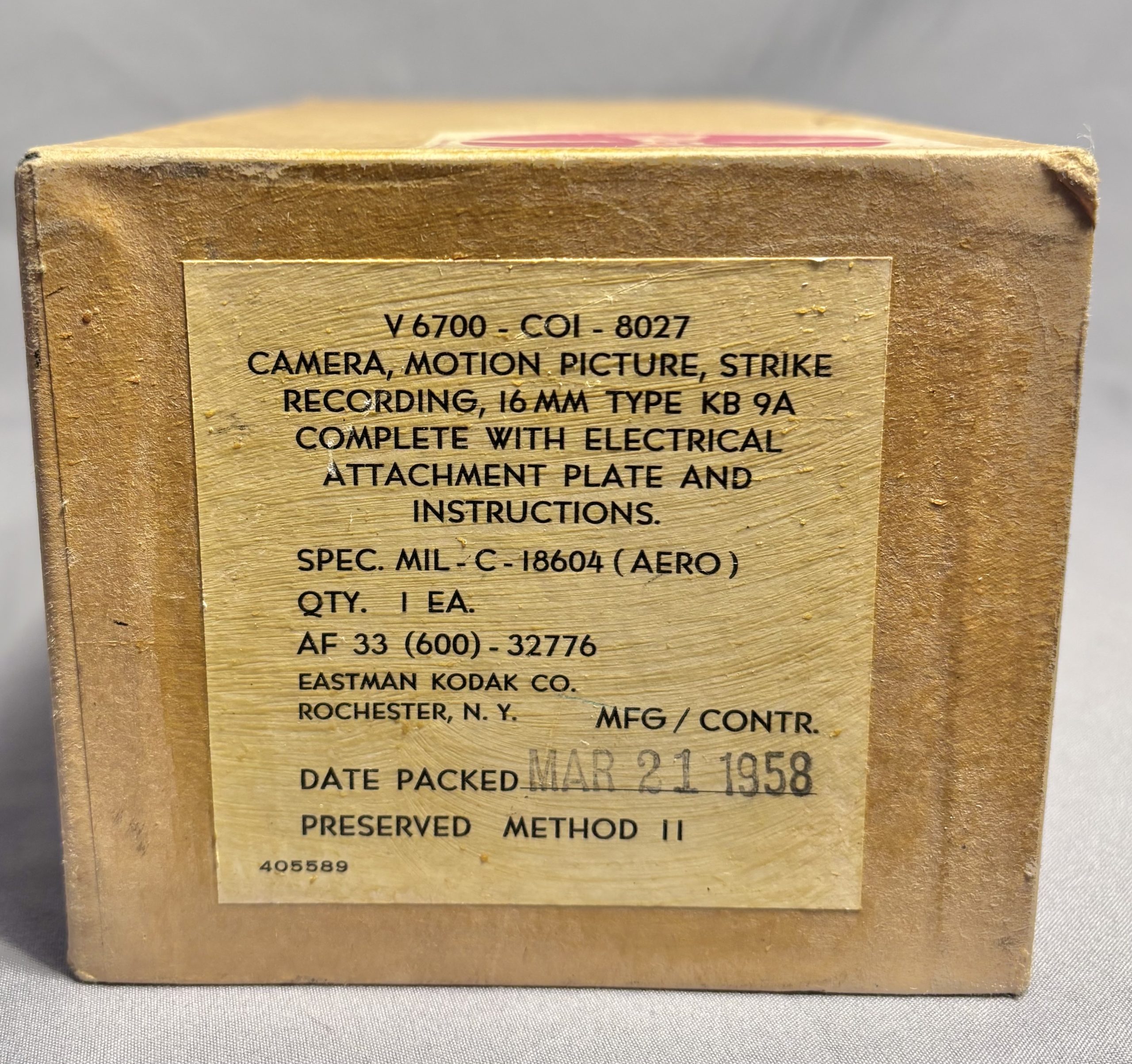 Offered here is an Old New Stock (New in Box) Eastman Kodak 16mm Motion Picture Strike Recording Camera, Type KB-9A, complete with electrical attachment plate and original instructions.